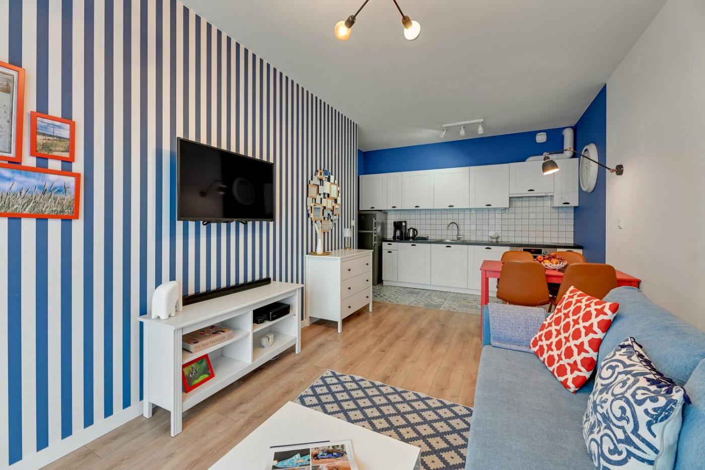 Apartament typu Deluxe. Featuring a private entrance, this apartment is comprised of 1 living room, 1 separate bedroom and 1 bathroom with a shower and a hairdryer. Guests can make meals in the kitchenette that is fitted with a refrigerator, a dishwasher, kitchenware and an oven. The apartment features parquet floors, a seating area with a flat-screen TV with satellite channels, a washing machine, soundproof walls, as well as a tea and coffee maker. The unit offers 2 beds. Apartament - 5 osobowy. Powierzchnia pokoju ok.: 47 mkw.