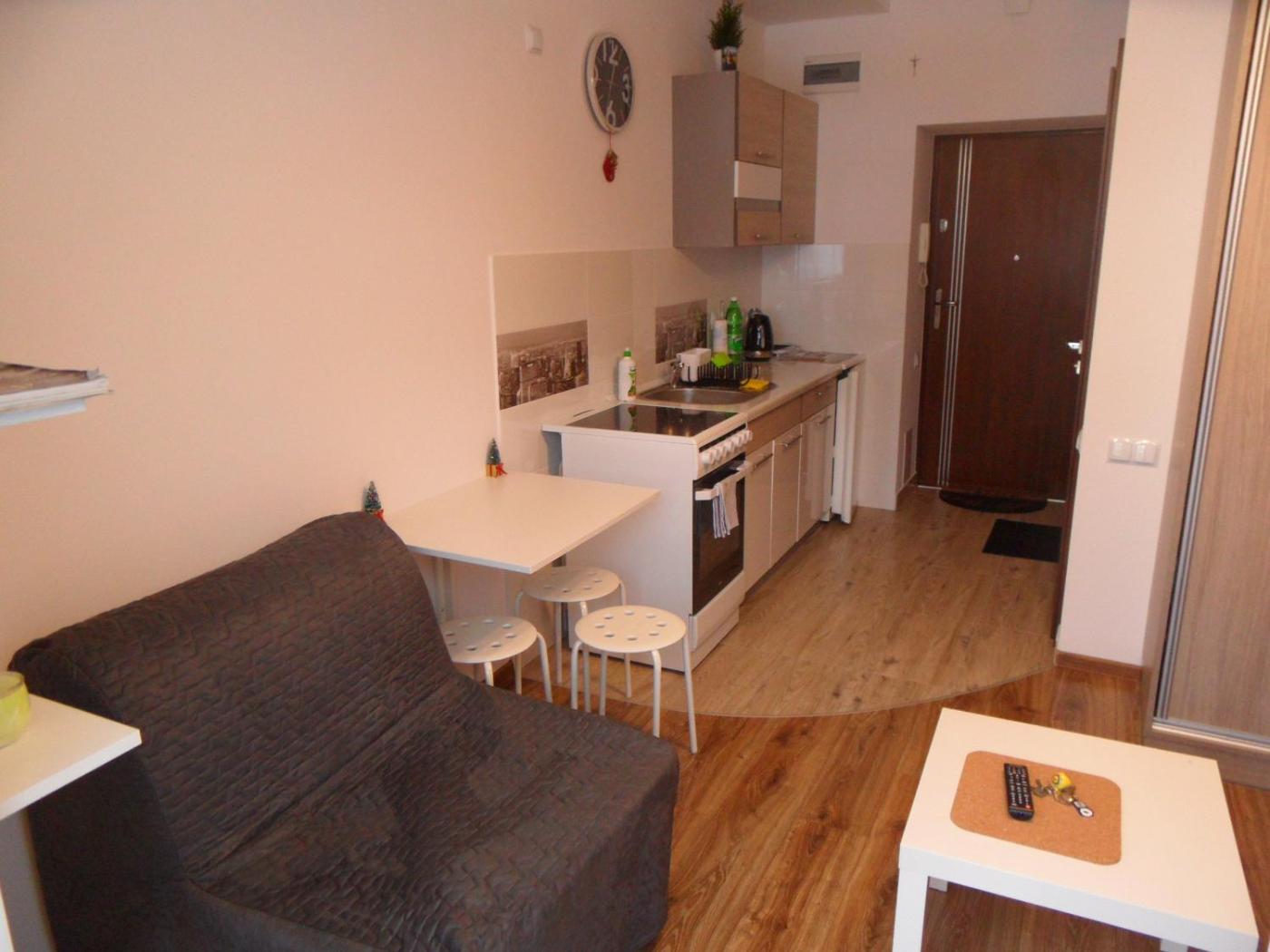 W apartamencie zapewniono sypialnię (1), łazienkę (1), pościel, ręczniki, jadalnię oraz kuchnię z pełnym wyposażeniem. Do dyspozycji Gości jest także telewizor z płaskim ekranem z dostępem do kanałów satelitarnych oraz balkon z widokiem na miasto.
